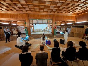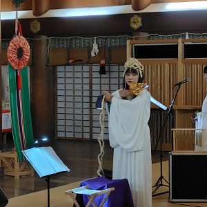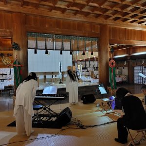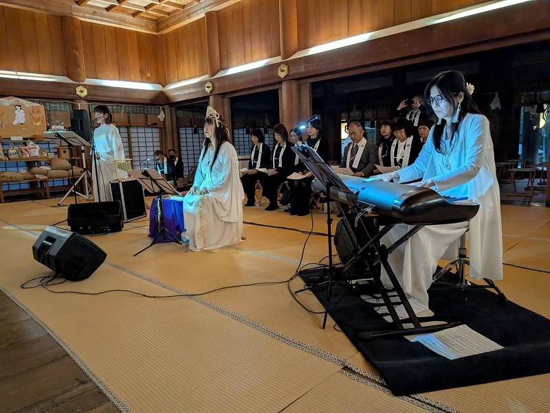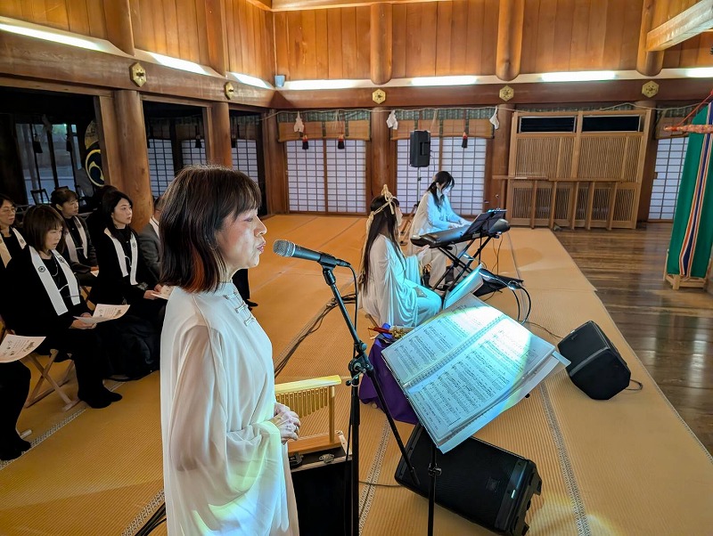 奉納・行事 歌唱奉納 12月7日、拝殿においてミュウハウス 安田深結さん他12名の皆さんに神恩感謝・厄病退散・世界平和を祈り歌と読み語りの奉納をいただきました。 基本情報 日 程 令和7年12月7日 奉納・行事一覧に戻る