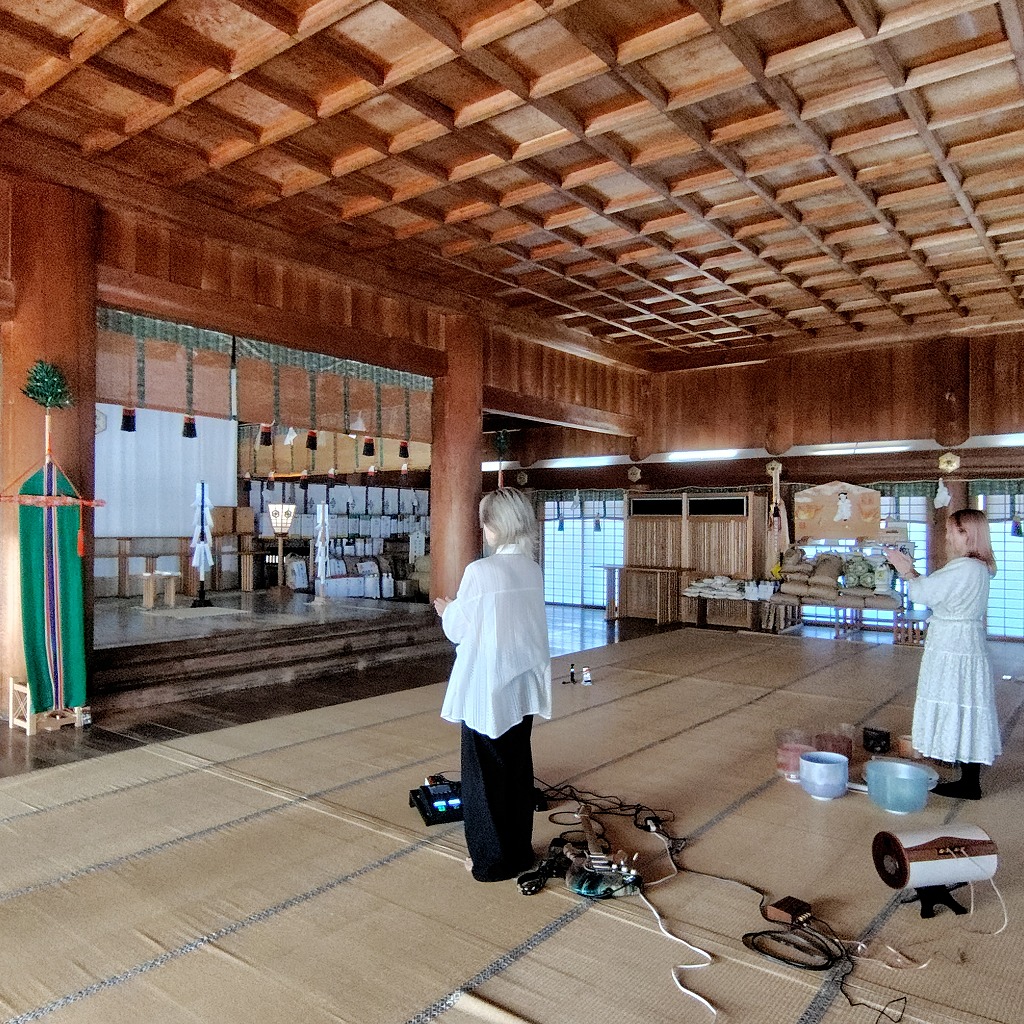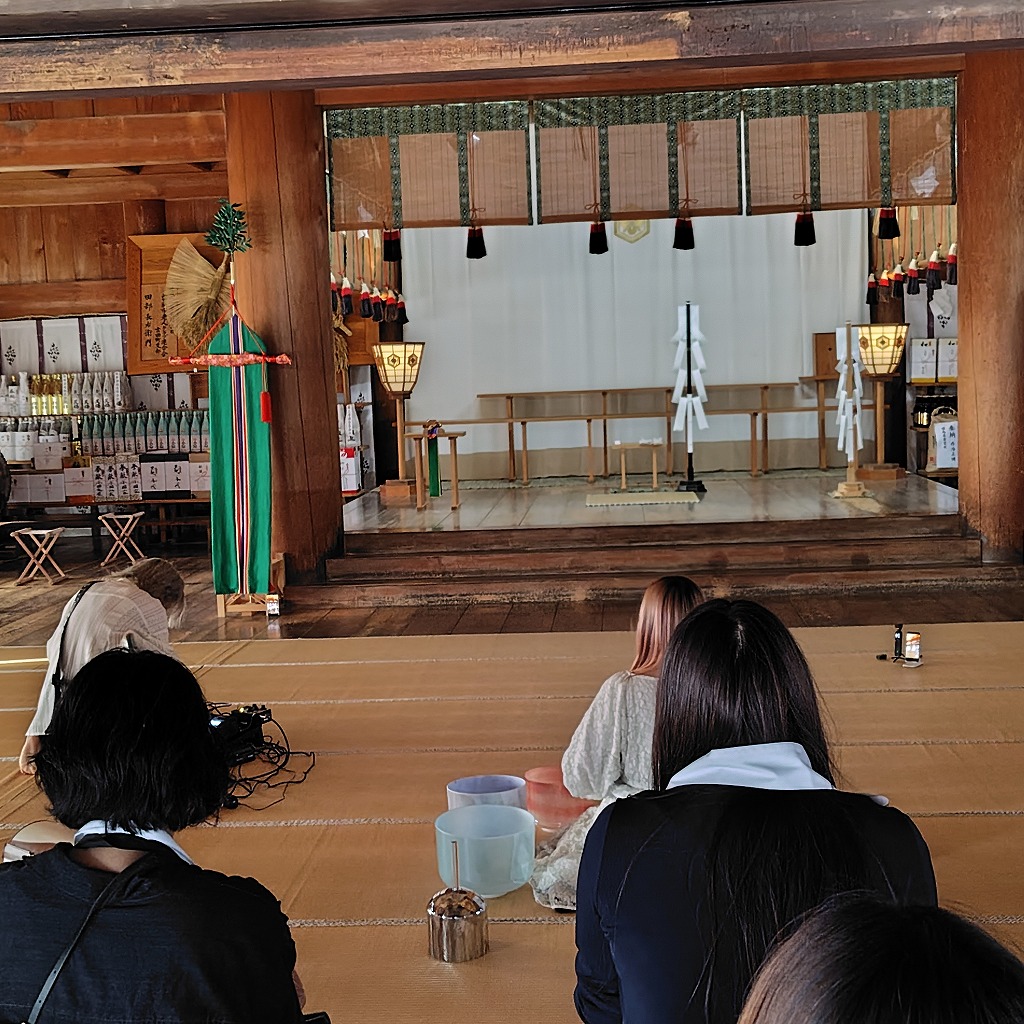 3月19日、拝殿において春名めぐみさんによるクリスタルボウル&ギター演奏が奉納されました。