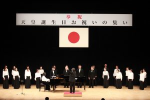 そして午後1時30分より、「天皇誕生日お祝いの集い」が出雲市大社町の大社文化プレイスうらら館に於いて開催されました。